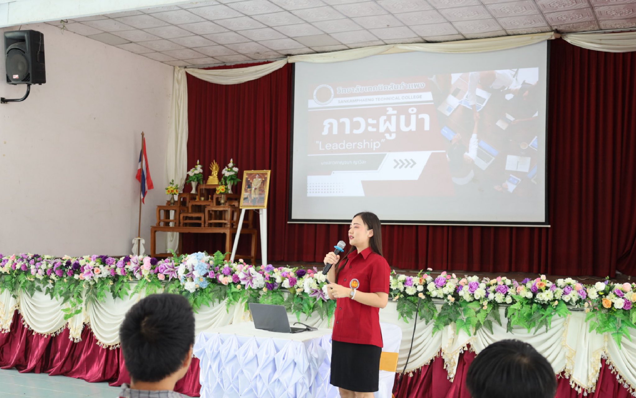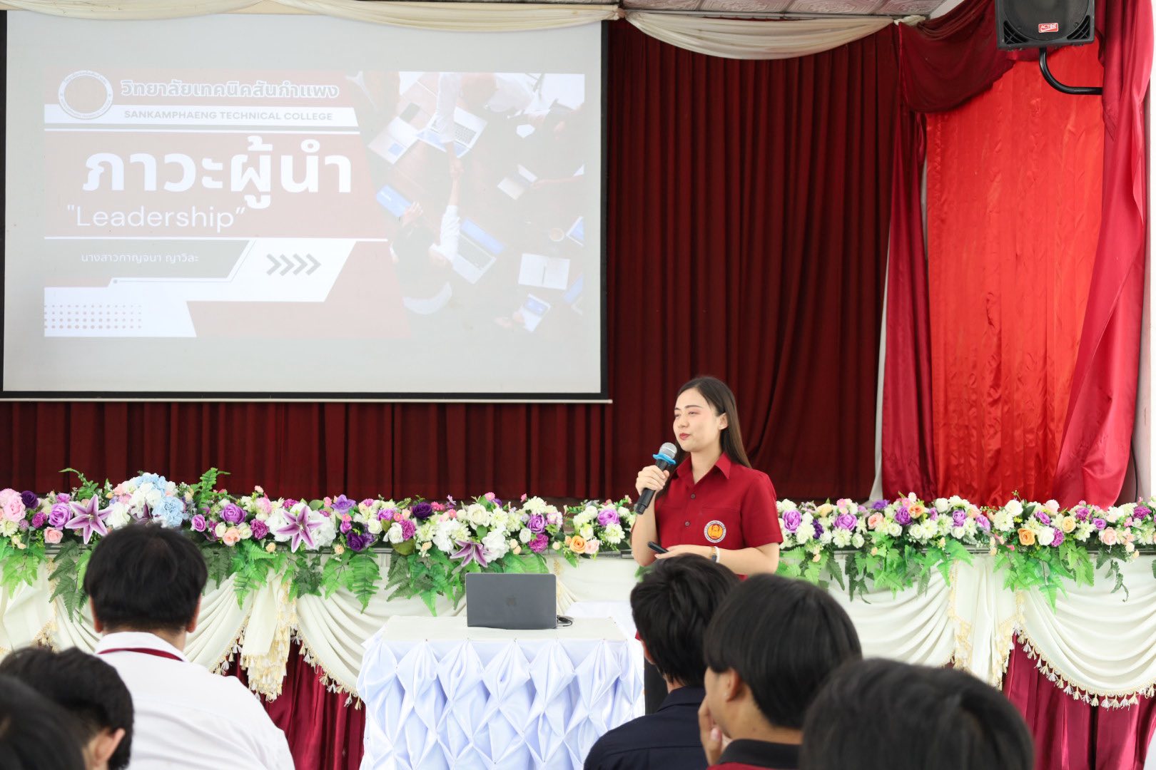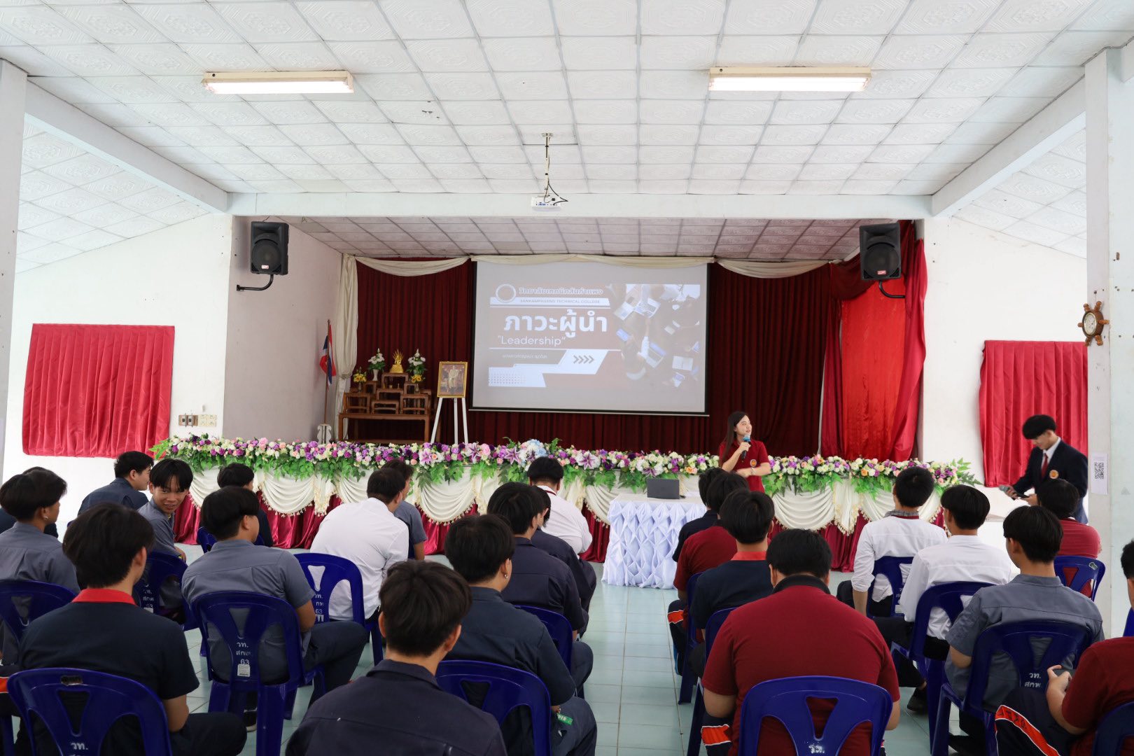 ดยได้รับเกียรติจาก นายวินัย จันทรานาค ผู้อำนวยการวิทยาลัยเทคนิคสันกำแพง เป็นประธานกล่าวเปิดพิธี ภายในงาน มีคณะผู้บริหาร คณะครู นักเรียน และนักศึกษา เข้าร่วมกิจกรรมอย่างพร้อมเพรียง บรรยากาศเต็มไปด้วยความมุ่งมั่นและความร่วมมือ วัตถุประสงค์ของโครงการ เพื่อส่งเสริมและพัฒนาทักษะความเป็นผู้นำ เพื่อปลูกฝังความรับผิดชอบและการทำงานเป็นทีม เพื่อสร้างบุคลากรที่มีคุณธรรม จริยธรรม และจิตสาธารณะ วิทยากรผู้บรรยายให้ความรู้ โดย นางสาวกาญจนา ญาวิละ