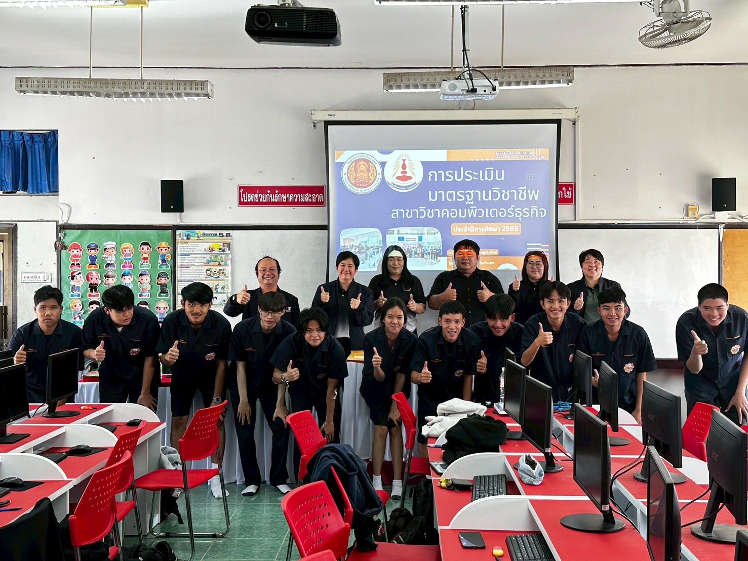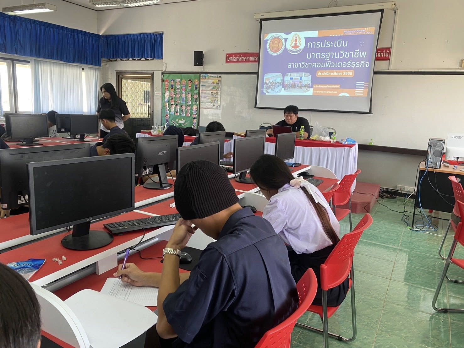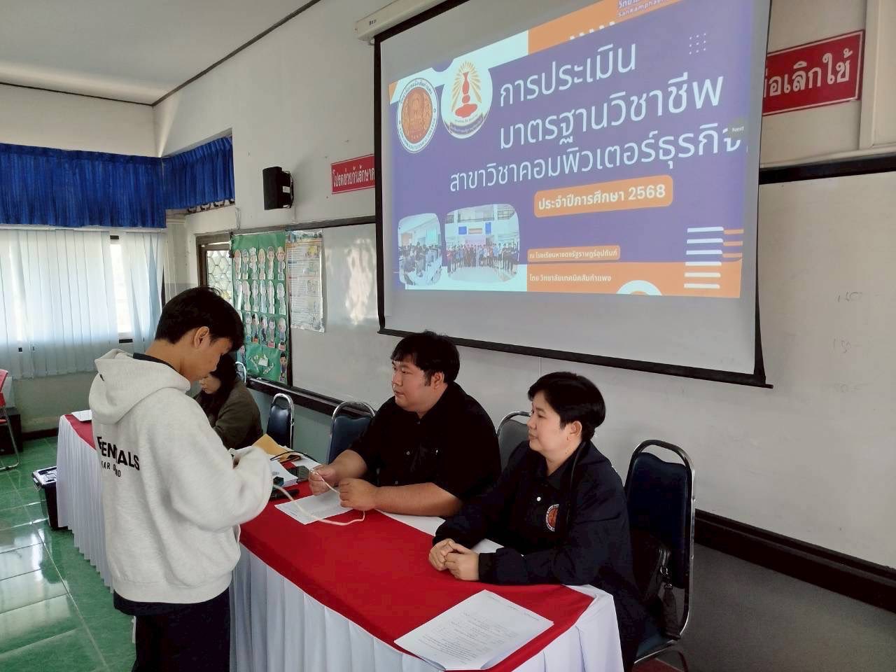 วันที่ 28 มกราคม 2569 วิทยาลัยเทคนิคสันกำแพง นำโดย นางทิฆัมพร ต๊อดแก้ว ผู้แทนฝ่ายวิชาการ หัวหน้างานวัดผลและประเมินผล พร้อมด้วยคณะครู แผนกวิชาคอมพิวเตอร์ธุรกิจ ดำเนินการจัด การประเมินมาตรฐานวิชาชีพ ประจำปีการศึกษา 2568 สำหรับนักเรียน ทวิศึกษา สาขาวิชาคอมพิวเตอร์ธุรกิจ โรงเรียนหางดงรัฐราษฎร์อุปถัมภ์