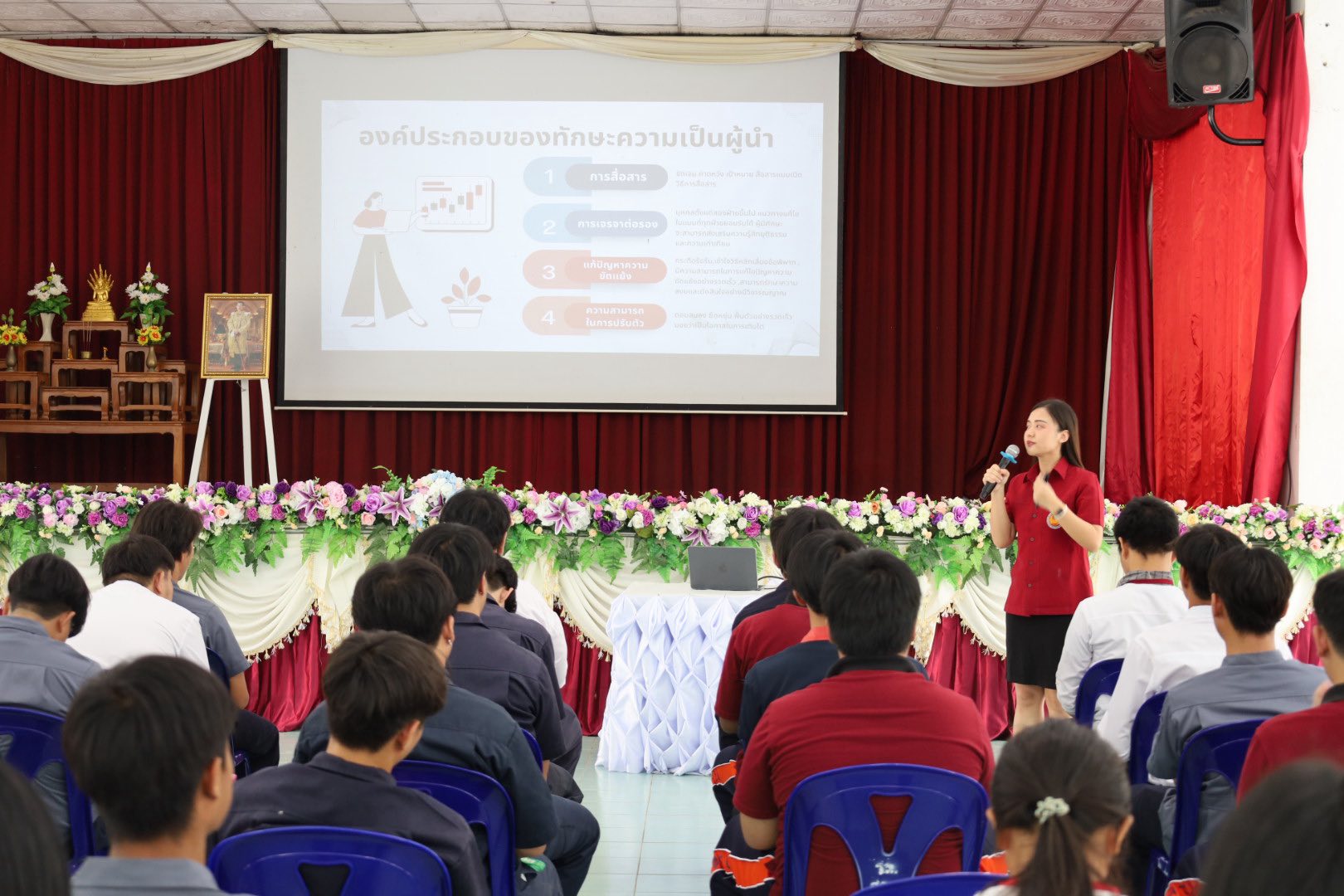 ดยได้รับเกียรติจาก นายวินัย จันทรานาค ผู้อำนวยการวิทยาลัยเทคนิคสันกำแพง เป็นประธานกล่าวเปิดพิธี ภายในงาน มีคณะผู้บริหาร คณะครู นักเรียน และนักศึกษา เข้าร่วมกิจกรรมอย่างพร้อมเพรียง บรรยากาศเต็มไปด้วยความมุ่งมั่นและความร่วมมือ วัตถุประสงค์ของโครงการ เพื่อส่งเสริมและพัฒนาทักษะความเป็นผู้นำ เพื่อปลูกฝังความรับผิดชอบและการทำงานเป็นทีม เพื่อสร้างบุคลากรที่มีคุณธรรม จริยธรรม และจิตสาธารณะ วิทยากรผู้บรรยายให้ความรู้ โดย นางสาวกาญจนา ญาวิละ